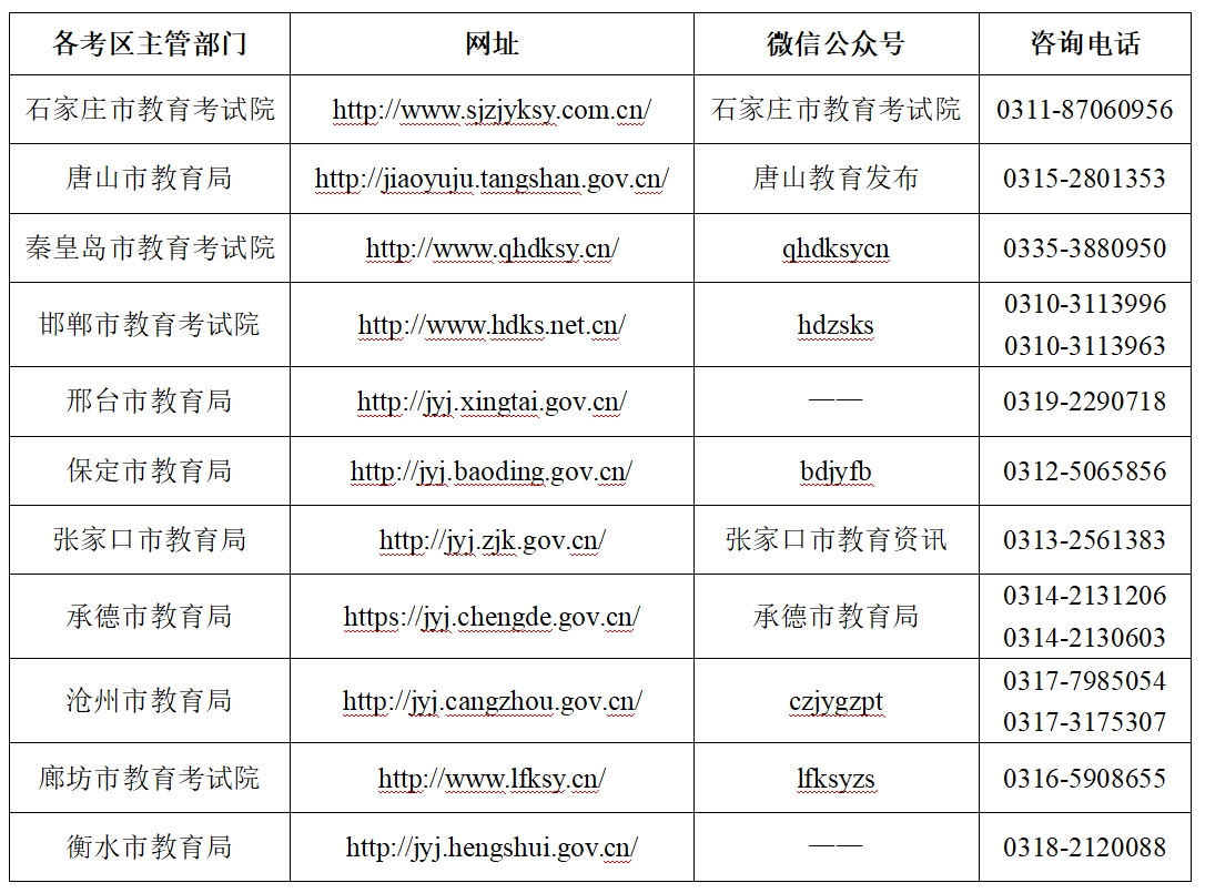 六、各考区主管部门网址、微信公众号及咨询电话